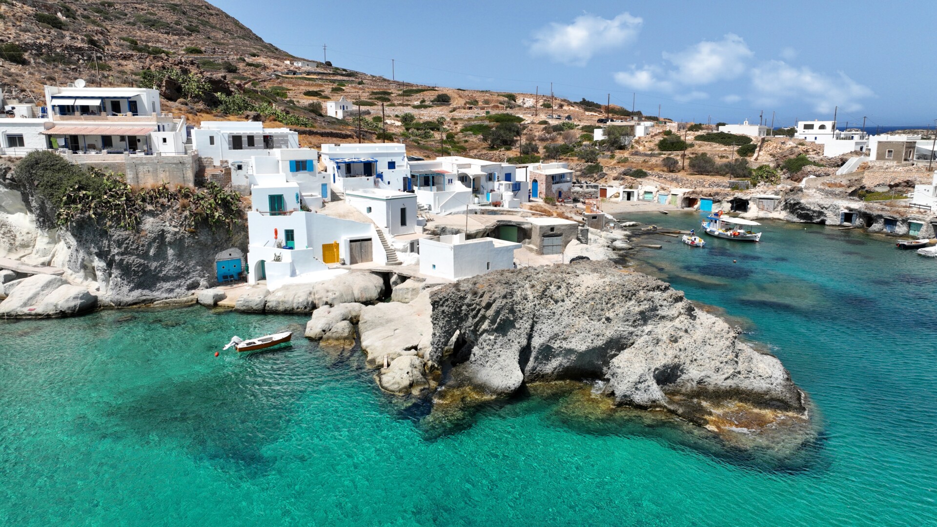 • Kleftiko: One of the island’s highlights and most visited spots! Kleftiko is an impressive seascape of towering volcanic rocks, sculpted over millennia by wind and waves into a series of hidden bays and sea caves beckoning exploration — either by boat or with a swim. These crystal-clear waters are perfect for snorkeling, revealing an underwater world as spectacular as the cliffs above. Once a hideout for pirates, the area’s natural inlets provided the perfect cover for ambushes and protection from storms. Fittingly, its name comes from the Greek word kleftiko, meaning “bandit’s lair.